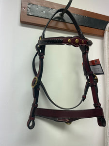 BRIDLE HS-SH005-GT Leather Show Bridle with 3 Brass Studs & dark brown plait