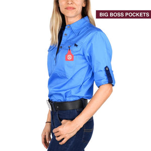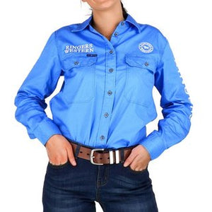 RINGERS WESTERN The Signature Jillaroo Womens Full Button Embroidered Work Shirt Blue